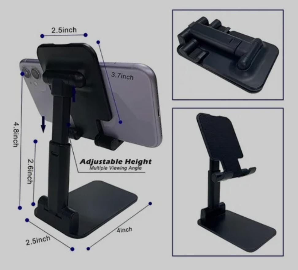 Este es un soporte de escritorio premium multifuncional diseñado para brindar máxima versatilidad y comodidad en el uso de smartphones, tablets y dispositivos electrónicos de hasta 12 pulgadas.